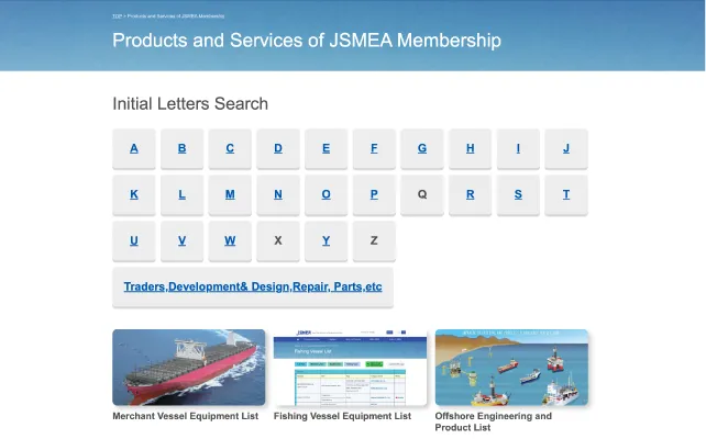 Japan Ship Machinery and Equipment Association(JSMEA, a nonprofit body) is organized by those enterprises engaged in manufactures, repairs and sales of marine propulsion engines and various auxiliary ship machinery such as pumps, air compressors, oil purifiers, heat exchangers, cargo and mooring winches, anchor windlasses, deck cranes, steering gears, navigational aids, fittings and accessories, and presently incorporates a total of 257 regular corporate members and 83 organizations of supporting members. (As of October 2025)